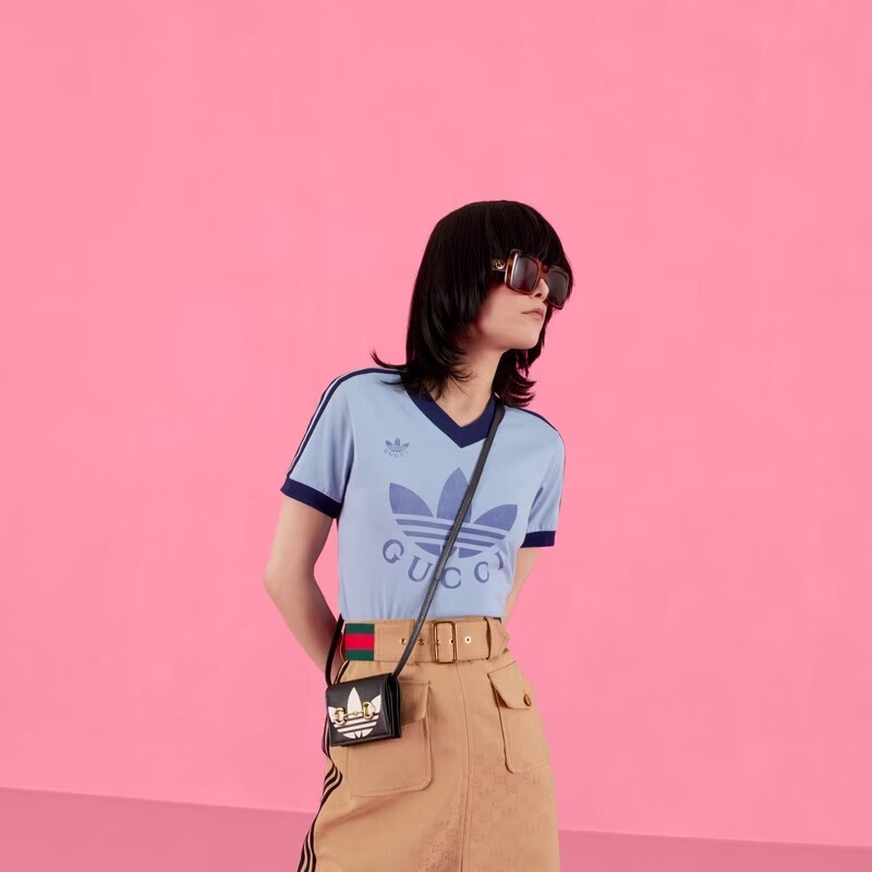 Part of the adidas x Gucci collection, this card case features the Trefoil print. Emblematic House’s motifs mix with those of the historic sportswear brand adidas. The collection sees both heritages encoded in a trio of lines, where adidas and Gucci combine archival emblems. Creative Director, Alessandro Michele pulls inspiration from his memories of the ‘80s and ‘90s for a collection that is both nostalgia-driven and contemporary.